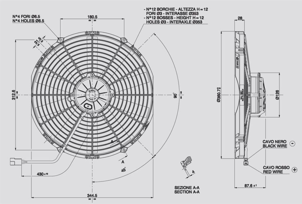 Spal Kühlerlüfter VA13-AP70/LL-63S 12V D360-D330 T=88 / 2945m³