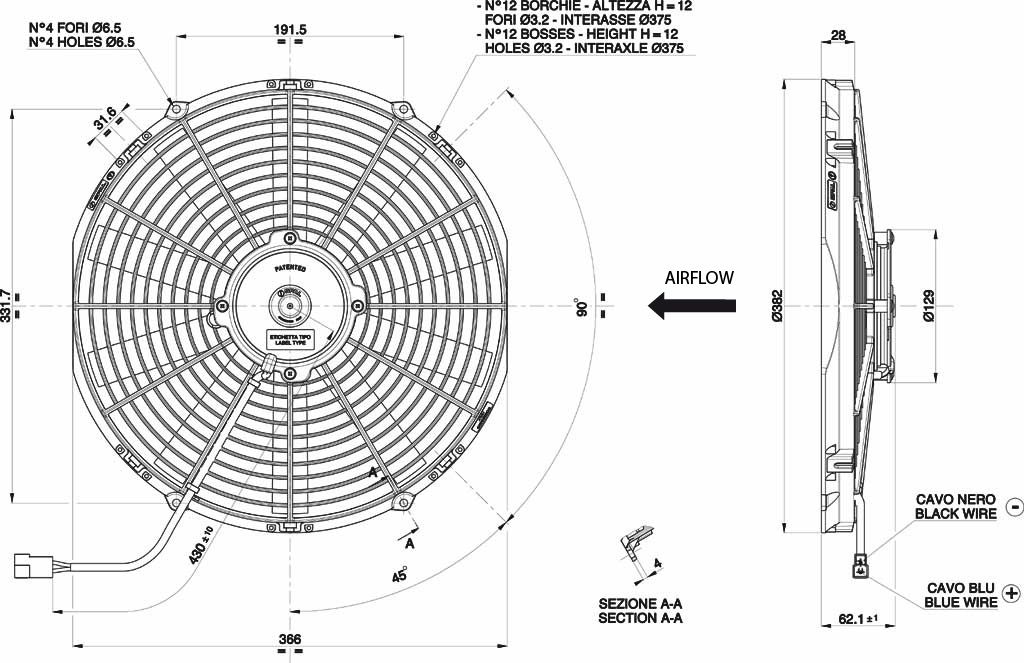 Spal Kühlerlüfter VA08-AP51/C-23S 12V D382-D350 T=63 / 2140m³