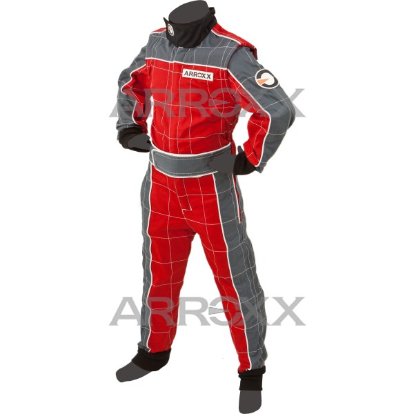 Kinderoverall Baumwolle Rot Grau