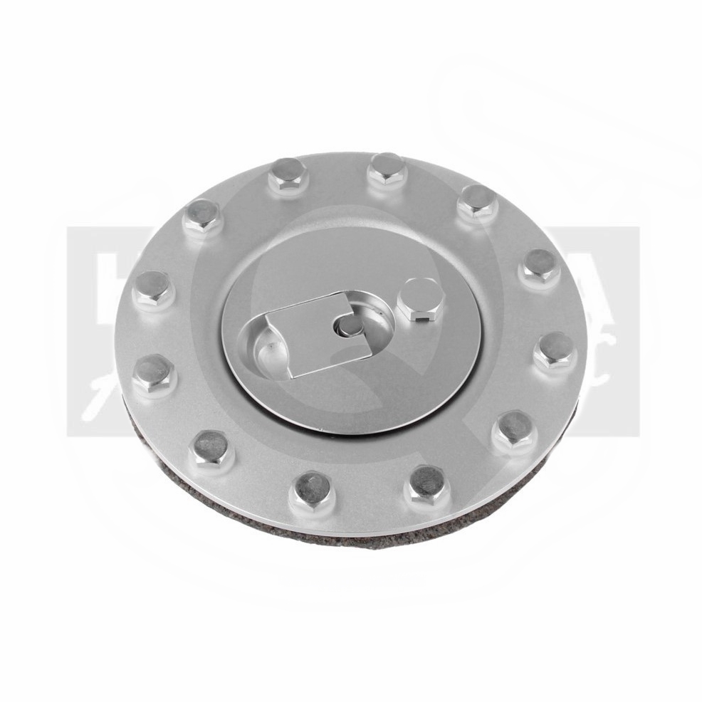 Aluminium-Tankdeckel für außen, mit einfachem Schnellverschluss. Durchmesser 14cm
