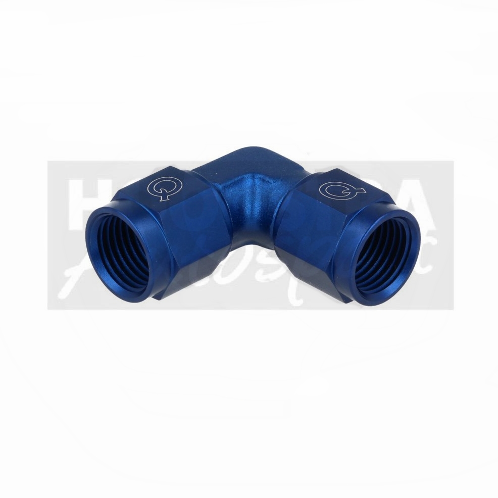 Aluminium adapter 90° female/female draaibaar met swivel.