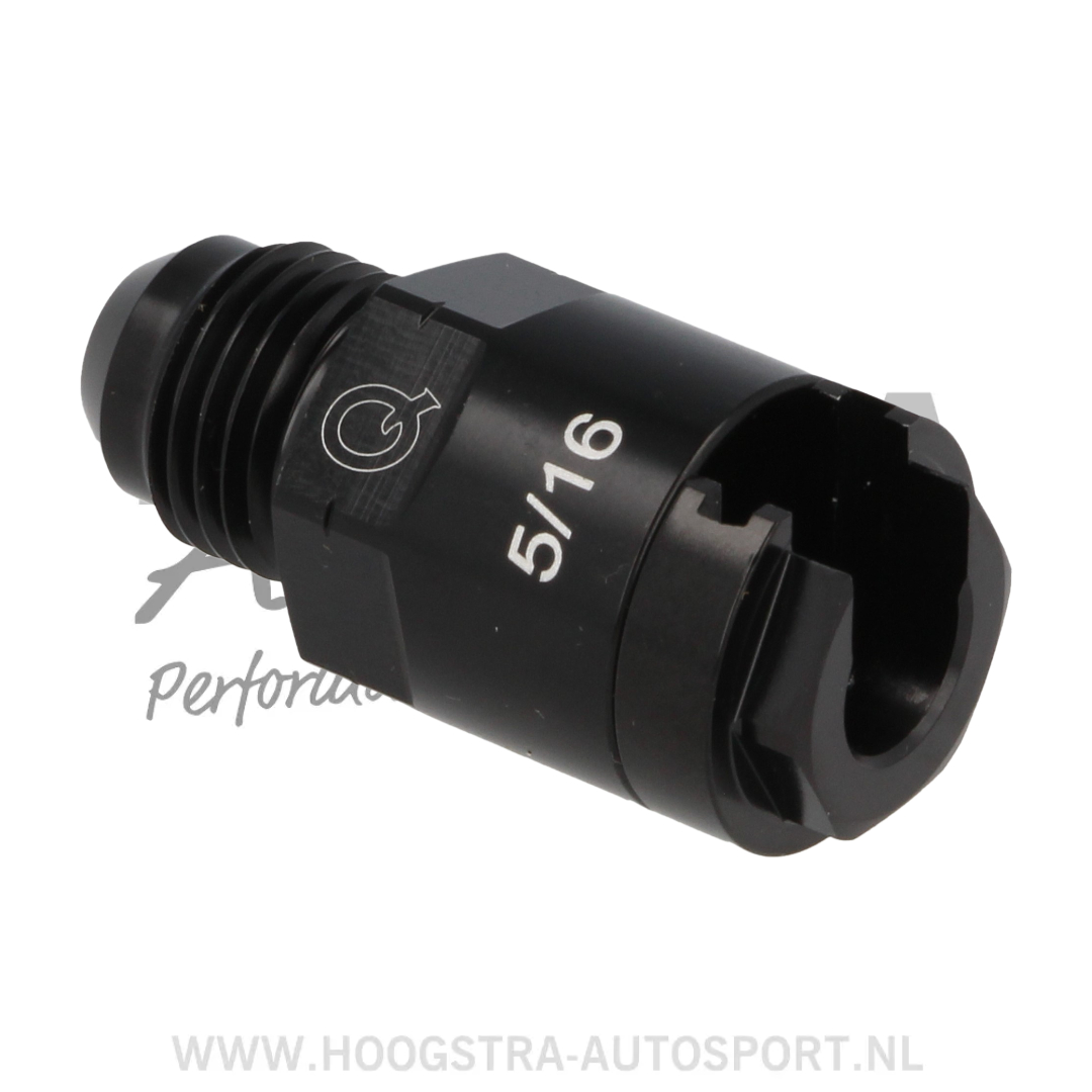 Aluminum quick release adapter, mounts to a standard 7.94mm fuel line. This screw-on quick disconnect has a female 7.94mm (5/16″) to a D08 male connection.