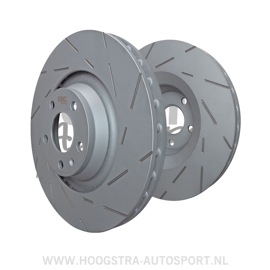 EBC manufactures the Ultimax range of high quality brake discs. The narrower groove design of the Ultimax sport brake disc and the progressive angle at which the grooves are milled into the disc creates a quiet sport disc that does have the benefits of removing gas, dirt, water and dust and provides parallel wear of the brake pads. The EBC Ultimax brake discs come in a black powder coat to prevent corrosion. The grooved design of the Ultimax discs helps create friction between disc and pad. This friction helps improve "bite" and results in a shorter stopping distance.