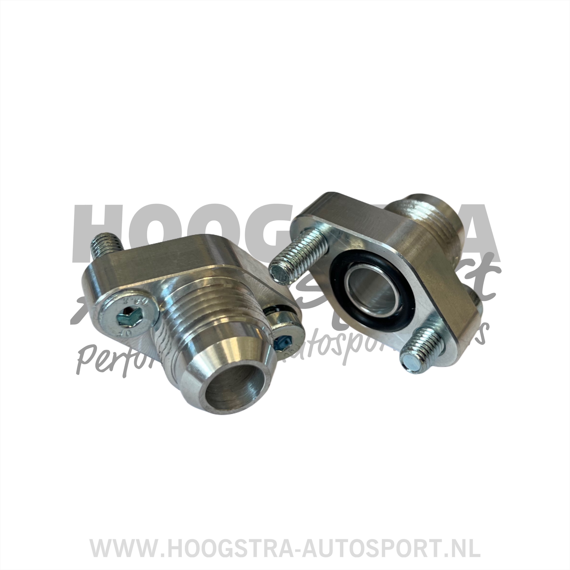 Set of 2 aluminum adapters including bolts and O-rings.