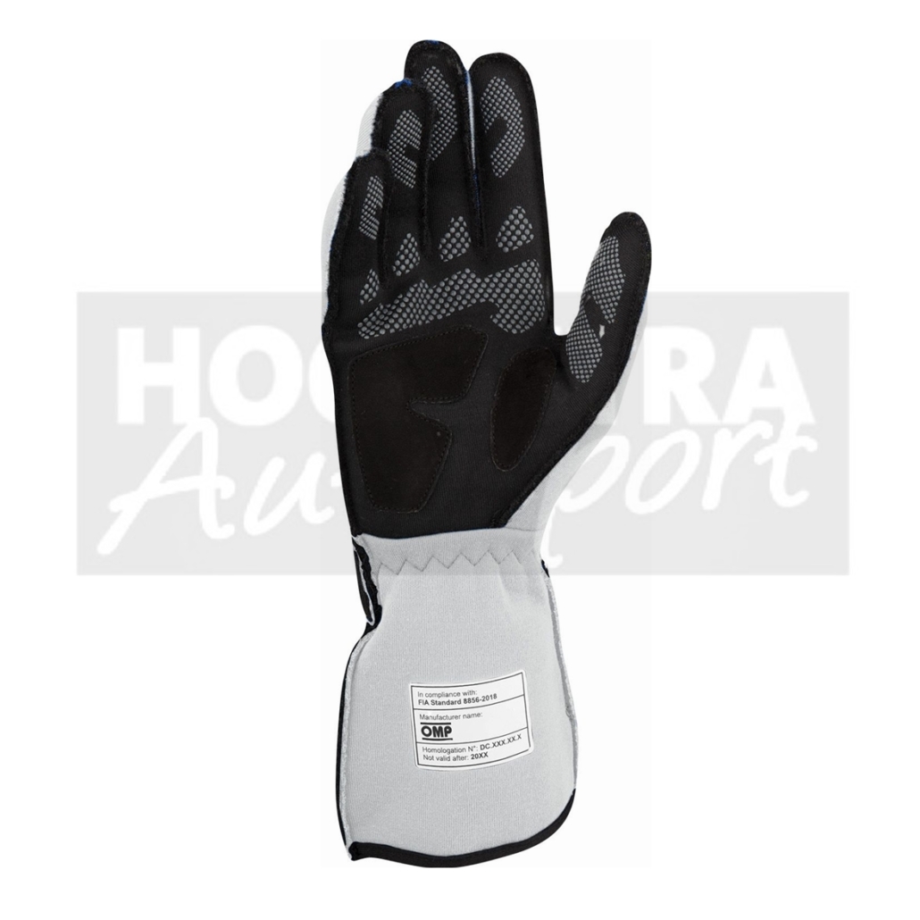 Professional Omp driver's glove with maximum grip. The contoured glove design is characterized by its ergonomic fit and superior comfort, as well as grip and mobility thanks to the siliconized palm. Special external seams reduce pressure points, thus also signs of fatigue and further increase wearing comfort.