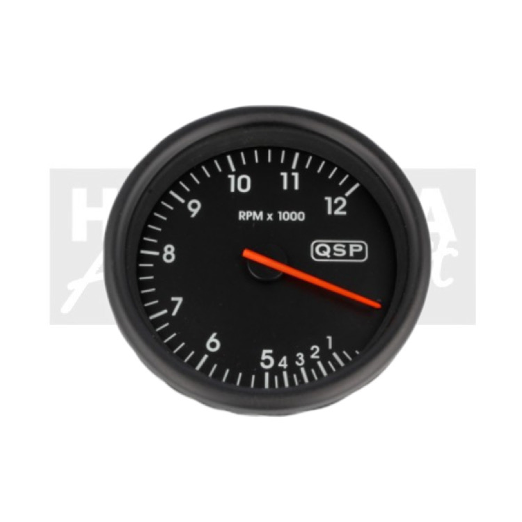 QSP Tachometer with Recall functionRange: 0 - 12000 RPMDiameter: 100mmInsertion depth: 55mm.Equipped with lighting, 12V connection, and mounting kit.Semi programmable calibration, and equipped with Recall function (=recall of the highest made RPM).Works on a.o.: ignition signal, alternator pulse, digital signal from ECU.Suitable for 4, 6 and 8 cylinder engines . "A quality gauge, made by the manufacturers of the famous Smiths gauges "