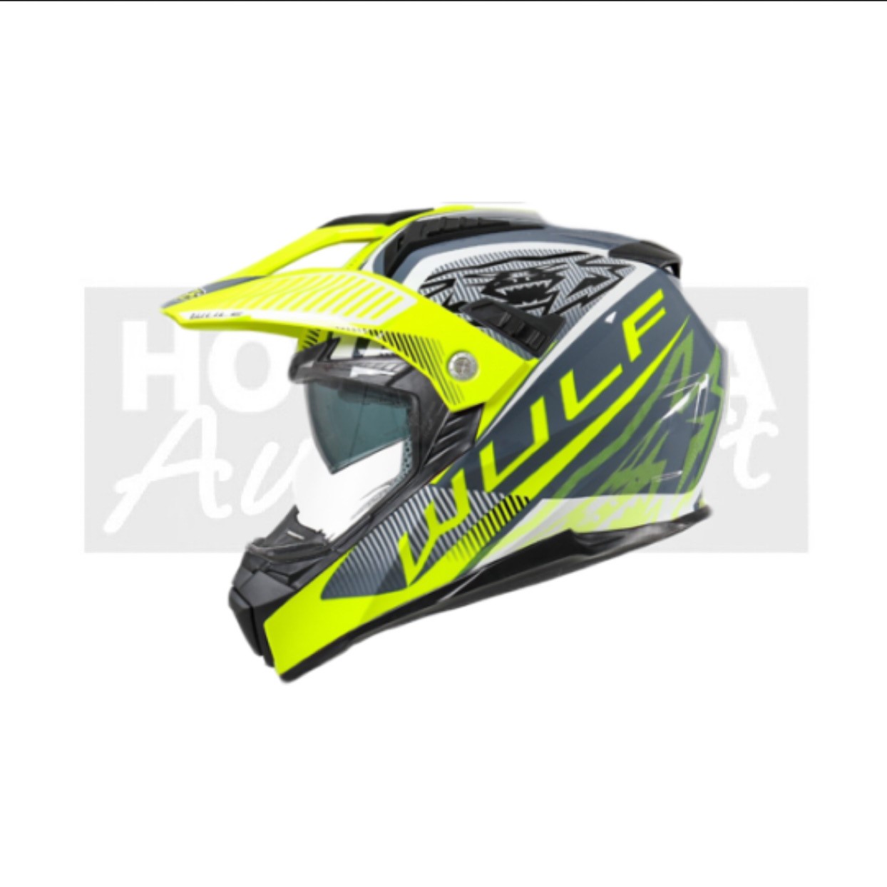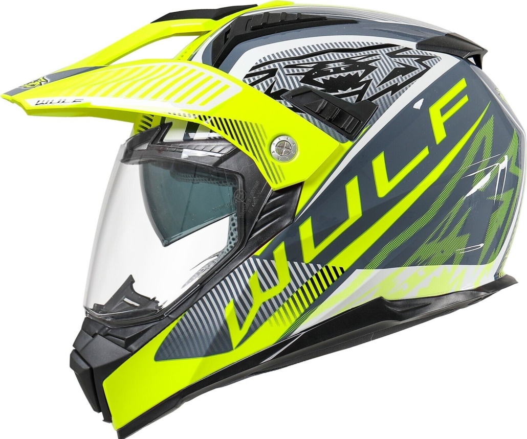 Beautiful Wulf Cross helmet with visor and sliding sunshield.