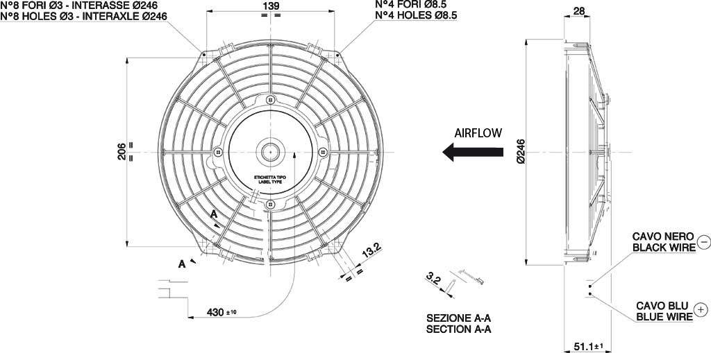 Ventilateur de refroidissement Spal VA07-AP7/C-31S 12V D247-D225 T=52 / 1140m³