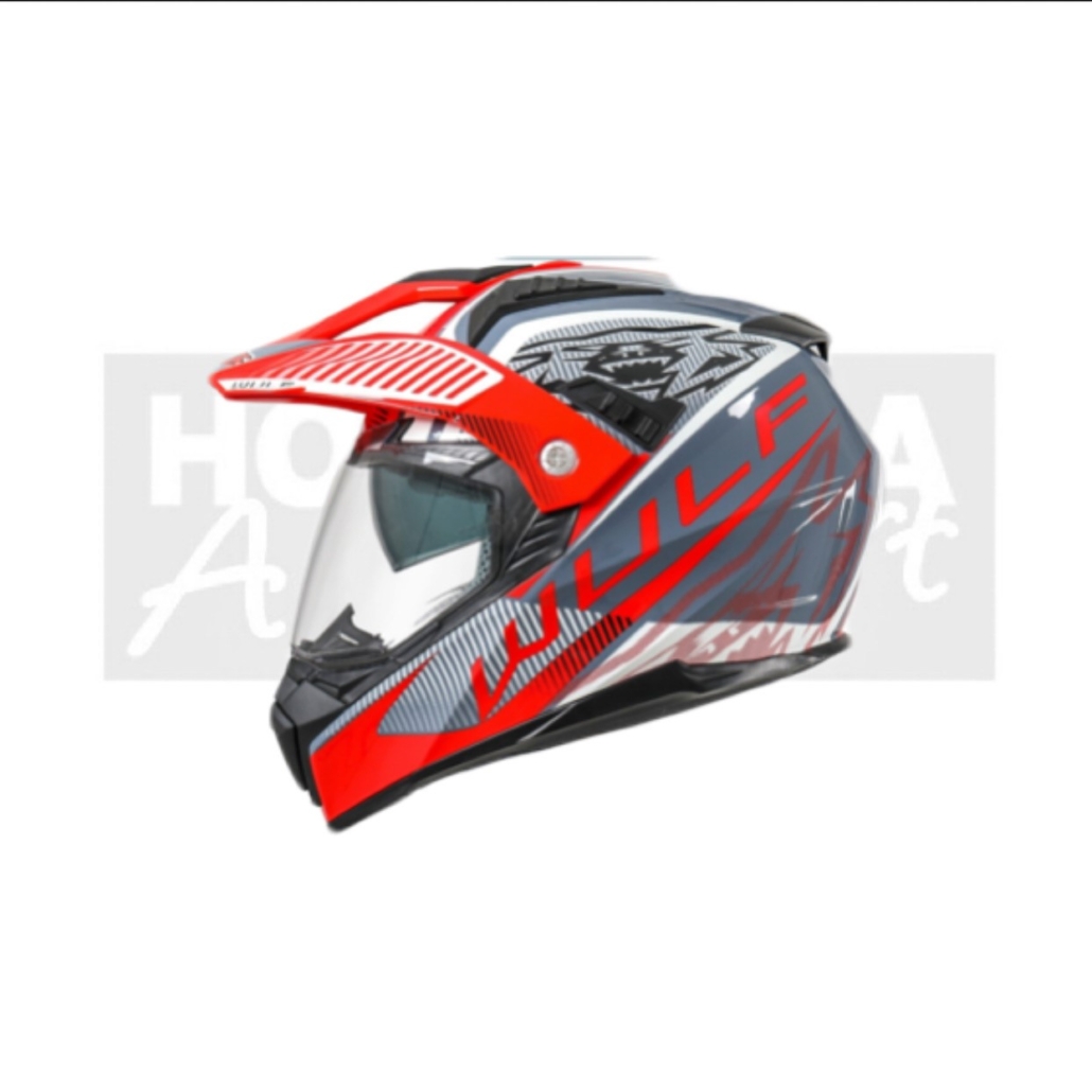 Beau casque Wulf Cross avec visière et pare-soleil coulissant.